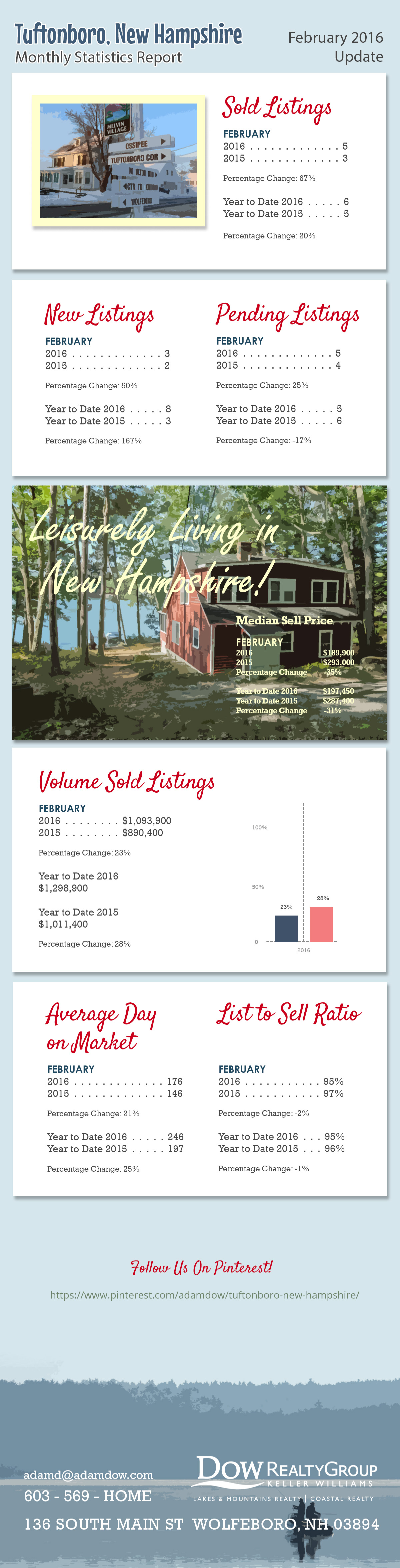 The following is the monthly statistics report for the town of Tuftonboro as of February 2016.