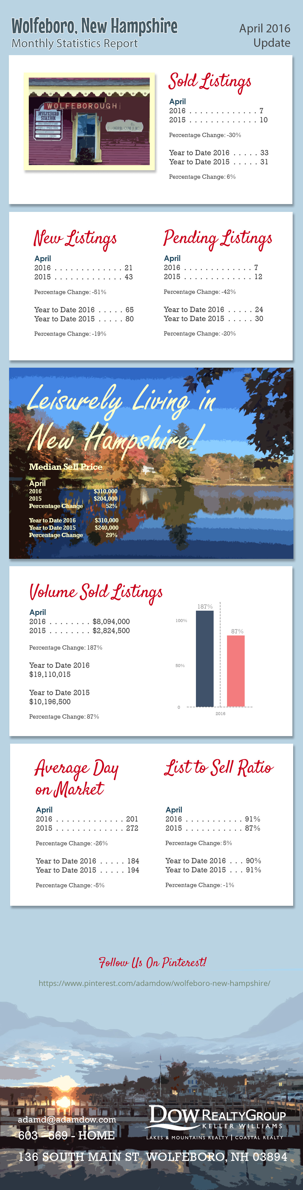The following is the monthly statistics report for the town of Wolfeboro as of April 2016.