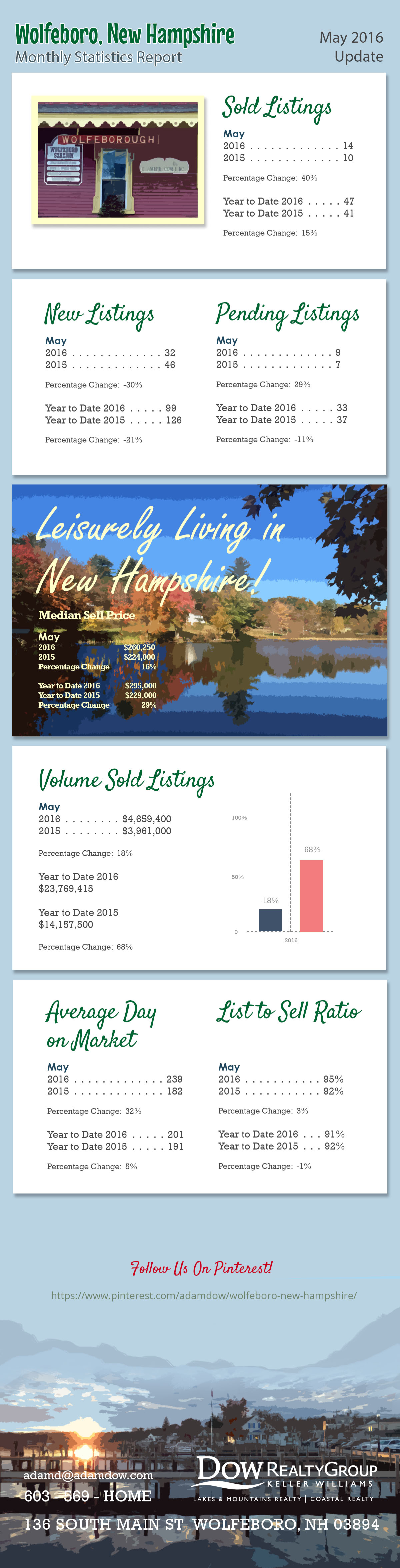 The following is the monthly statistics report for the town of Wolfeboro as of May 2016.