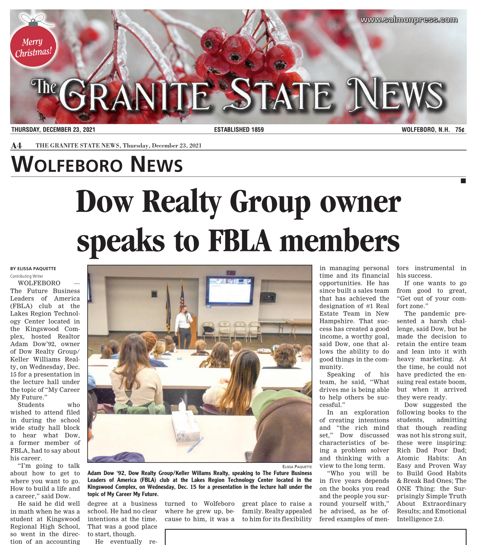 Adam Dow Speaks to Kingswood FBLA Members